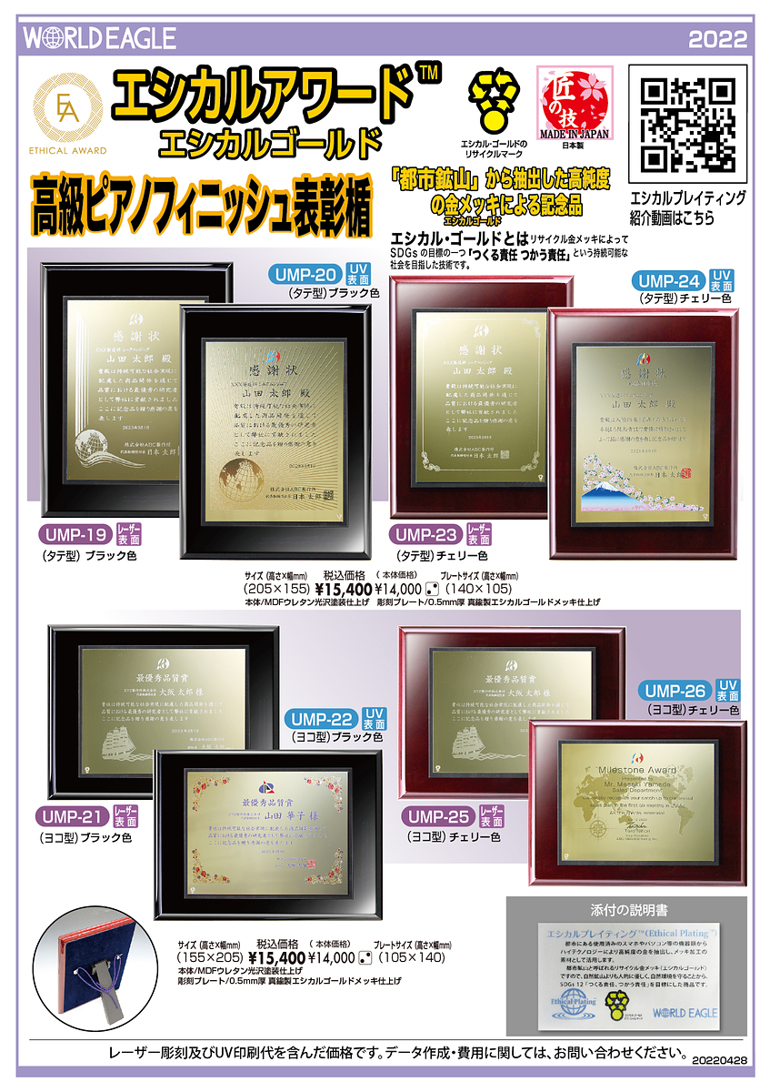 リサイクル金メッキの表彰プレート木板は、端材や間伐材から作られたMDF材に幾層もの塗装を塗り合わせ時間をかけて仕上げた逸品です!